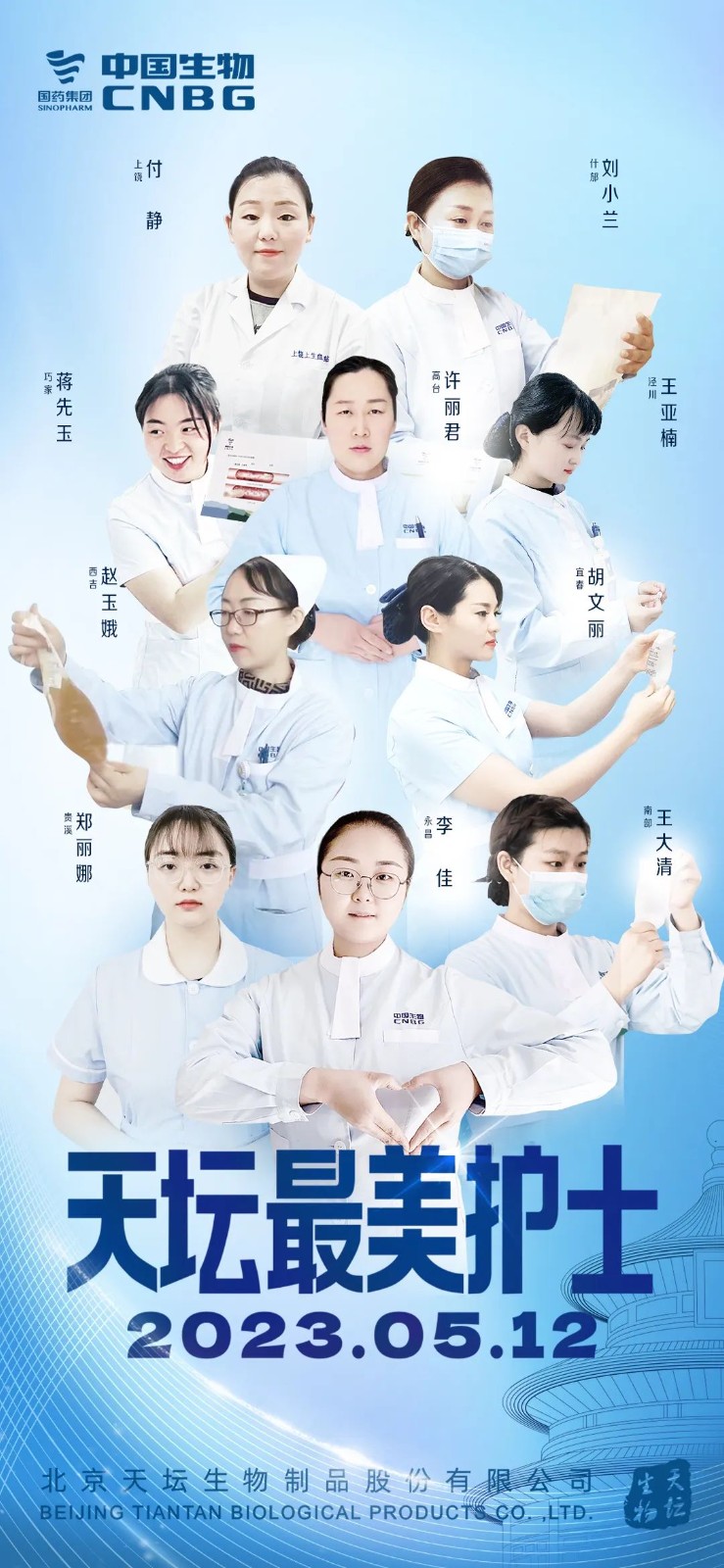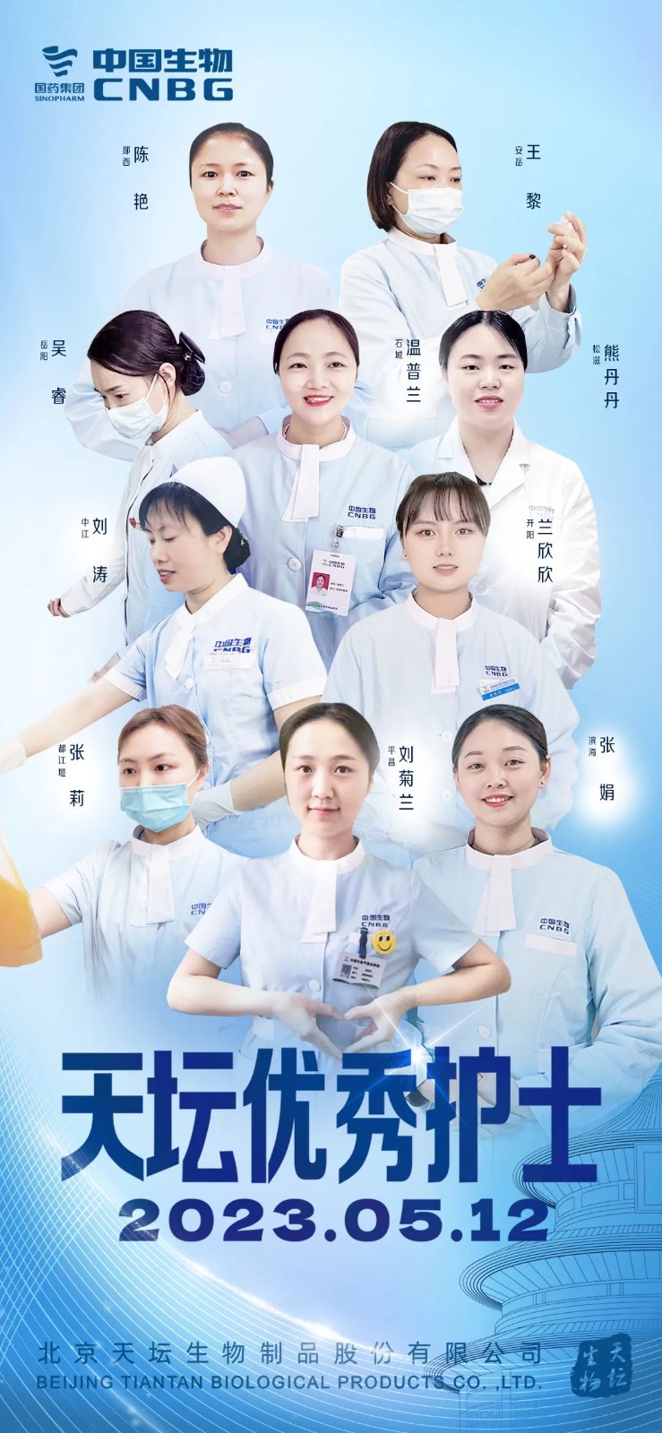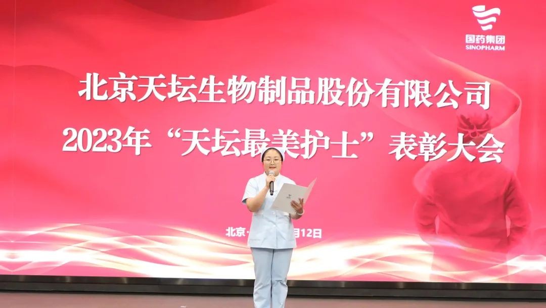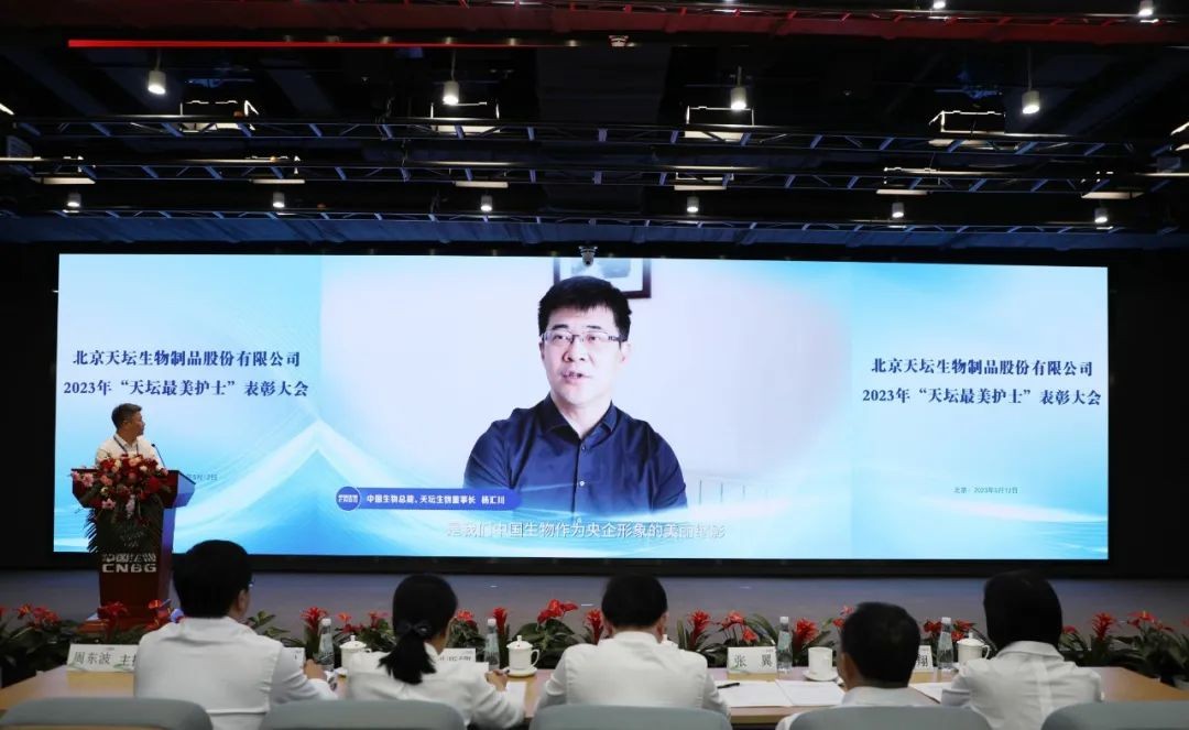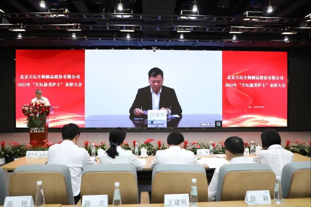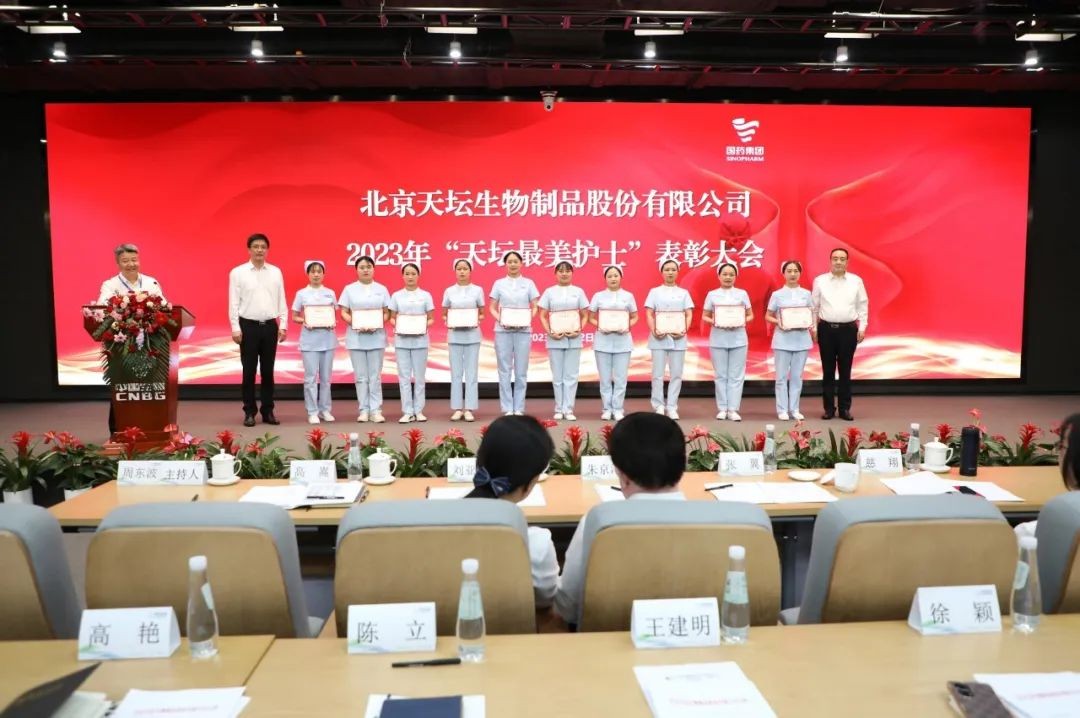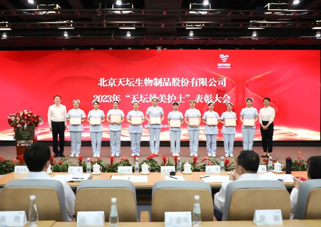 5月12日,2023年“天壇最美護士”表彰大會在北京舉行。中國生物黨委書記朱京津,天壇生物總經理付道興,黨委書記劉亞娜,副總經理何彥林,副總經理兼財務總監張翼,紀委書記高嵩出席會議。天壇生物常務副總經理周東波主持會議。