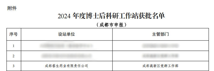 近日,四川省人力資源和社會保障廳及成都市人力資源和社會保障局下發(fā)《關于做好2024年度博士后工作站相關工作的通知》,北京天壇生物制品股份有限公司所屬成都蓉生藥業(yè)有限責任公司(簡稱“國藥天壇蓉生”)成功獲批設立國家博士后科研工作站。此次獲批不僅是對國藥天壇深耕生物醫(yī)藥領域多年科研實力與創(chuàng)新潛力的高度認可,更標志著公司高層次人才引育、核心技術攻關、科研創(chuàng)新體系建設邁上新臺階。