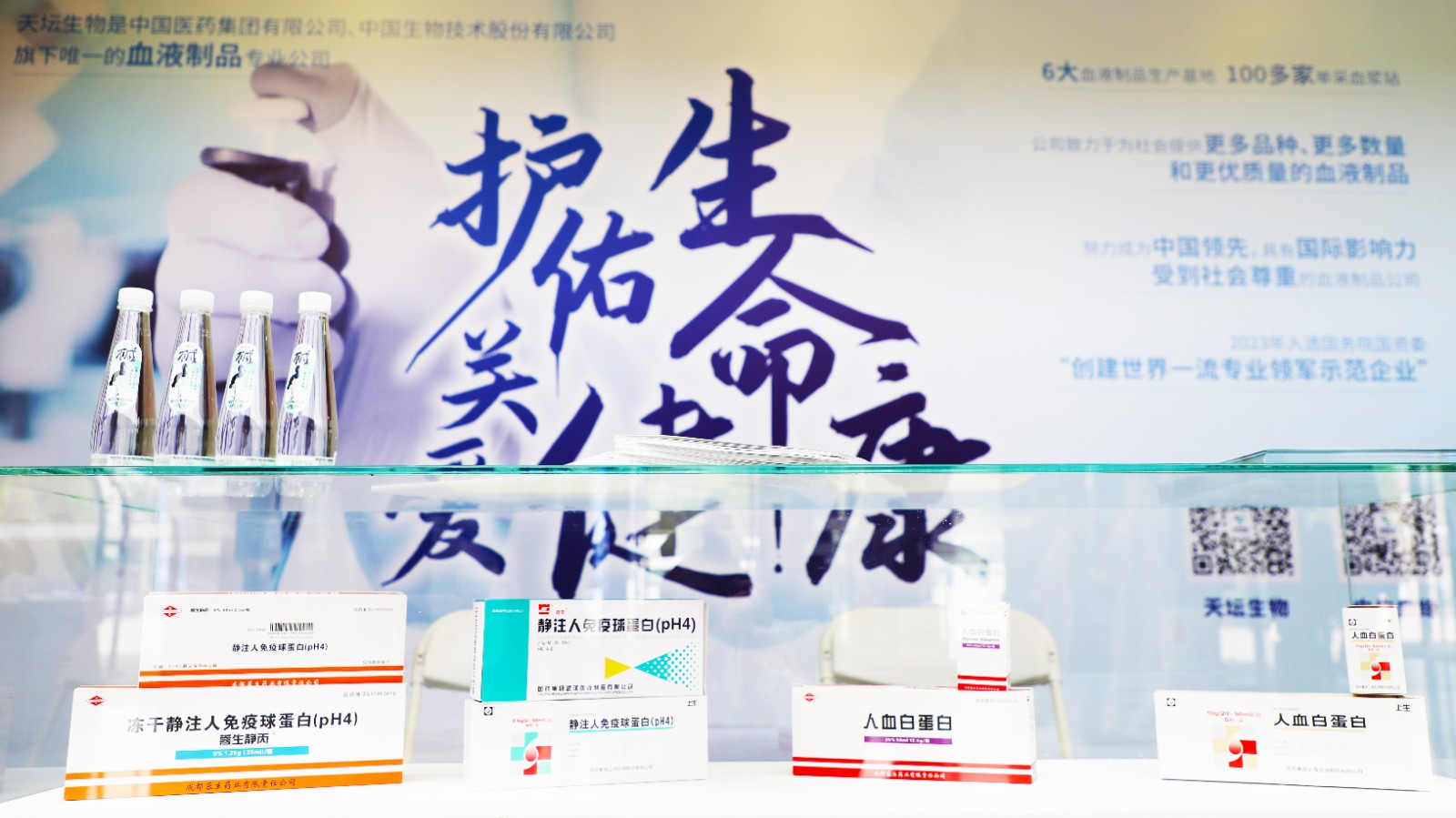 本屆大會同步設置展示區域,天壇生物人血白蛋白、靜注人免疫球蛋白、凝血因子三大類產品,包括注射用重組人凝血因子VIII、第四代靜注人免疫球蛋白(pH4)(“蓉生靜丙? 10%”)兩款重磅新品亮相展區,吸引大量現場觀眾駐足參觀。