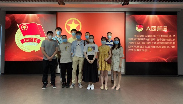 走進紀念館,團員們猶如走進了那段波瀾壯闊的歷史長河。紀念館內(nèi)展示了刊登進步青年翻譯文稿的《新青年》雜志、革命者曾使用的衣物等展品,并運用豐富的多媒體形式,展示了從五四運動到中國共產(chǎn)黨創(chuàng)建的壯闊歷史。團員們面對鮮艷的團旗,在支部書記帶領(lǐng)下一起重溫了入團誓詞。